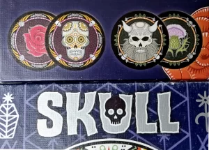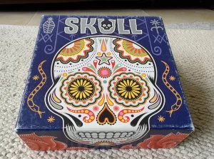 Skull published by Asmodee is an unassuming fast-play bluffing game for 3-6 players with super simple mechanics and a large dollop of deception.