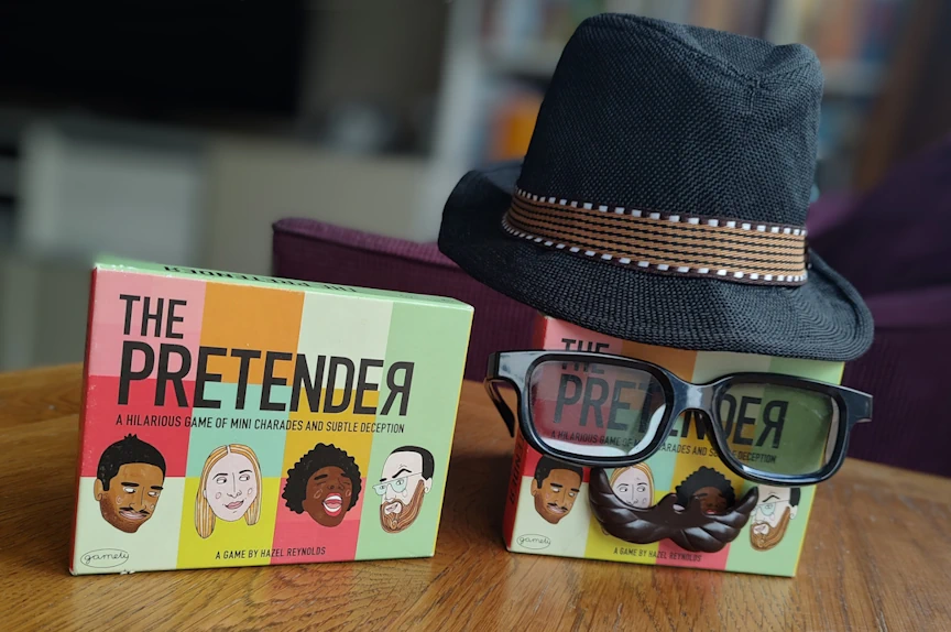 The Pretender (published by Gamely Games) is a surprisingly refreshing reinvention of the classic after dinner game – charades which weaves social deduction into the performing.
